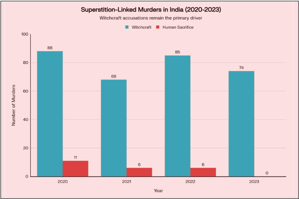 Research aggregating NCRB data highlighted an estimated 2,500 witch‑hunting deaths across India between 2000 and 2016, mainly in states like Jharkhand, Chhattisgarh, Odisha, West Bengal and Assam. The sheer scale turned witch‑hunting from a “rural superstition problem” into a recognised human‑rights issue.