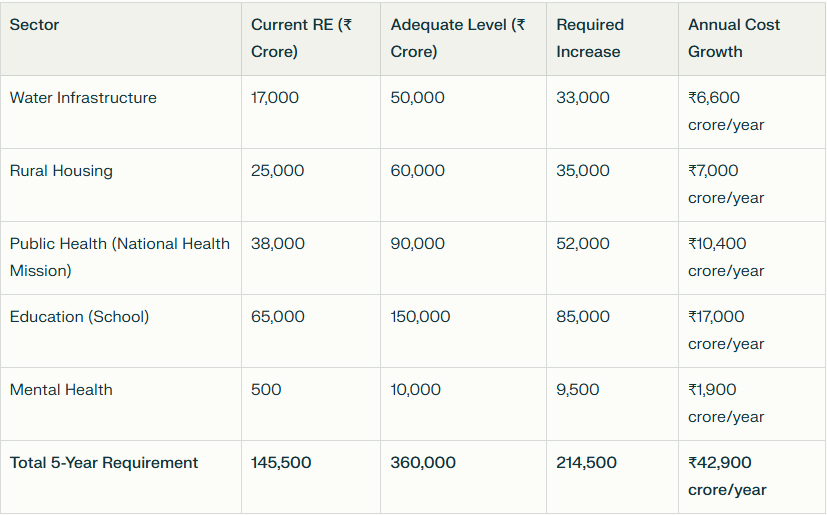 1. Fiscal Reallocation (Not Expansion): India doesn’t need to expand the fiscal deficit. It needs to reallocate 2-3% of budgeted capex toward human development. This choice is political, not mathematical.